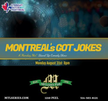 I’ll be performing at McLean’s Pub in Downtown Montreal at “Montreal’s Got Jokes” presented by Montreal Comedy Series, Leo Clarke, and StraightOuttaMontreal.