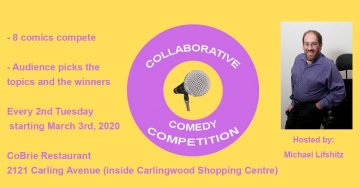 Comedy comes to Carlingwood! Comedian Michael Lifshitz hosts this bi-weekly comedy show…with a twist. The audience chooses the topics they want to hear jokes about…and then decides who did the best job with their topics.