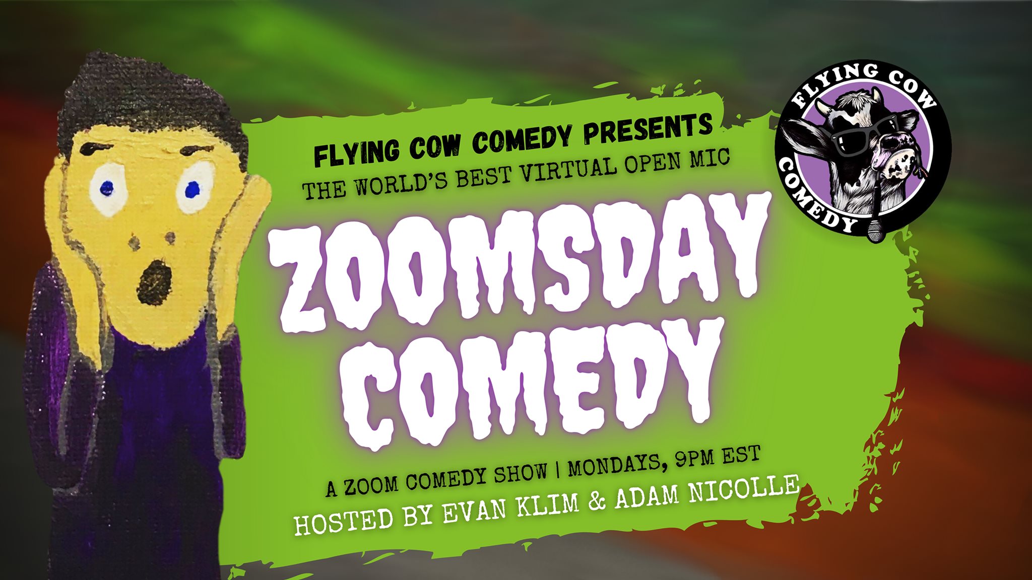 Flying Cow Comedy Presents Zoomsday Comedy: The world’s best virtual open mic, hosted by Evan Klim and Adam Nicolle!